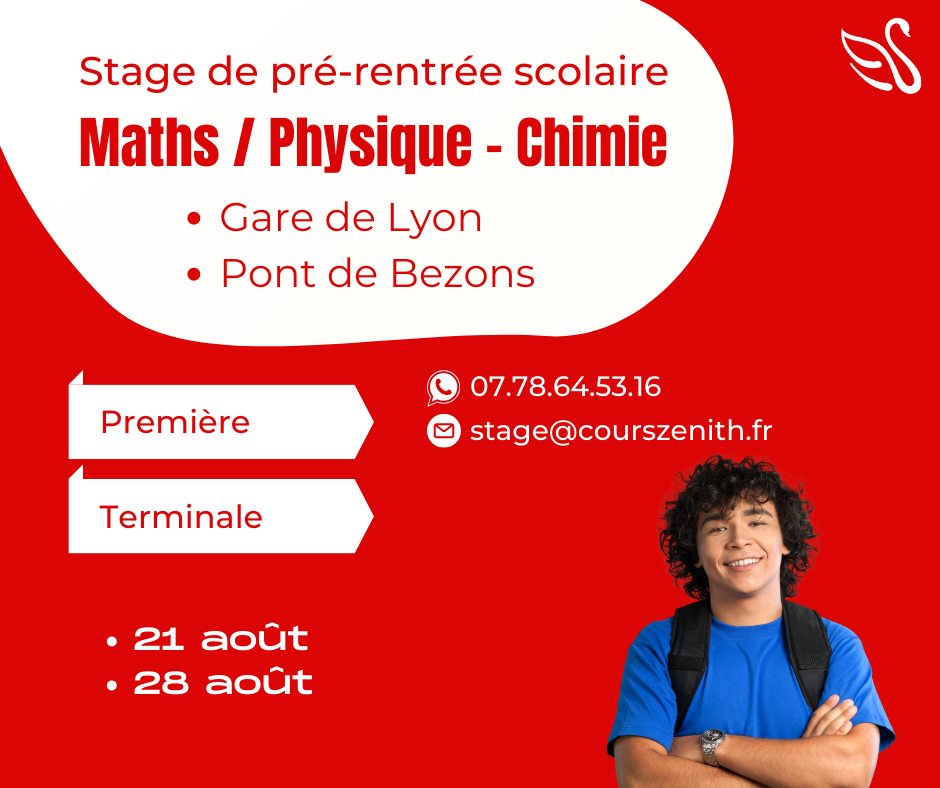 Préparez-vous pour le Baccalauréat en août avec Cours Zenith ! Nos stages sont proposés en mode hybride (vous avez la possibilité de choisir entre le présentiel et la visio).